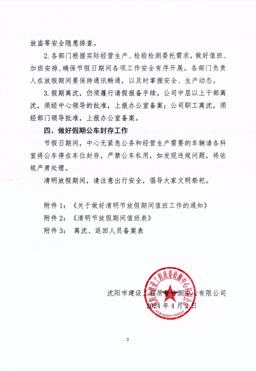 關(guān)于做好2024年清明節(jié)放假期間值班工作的通知